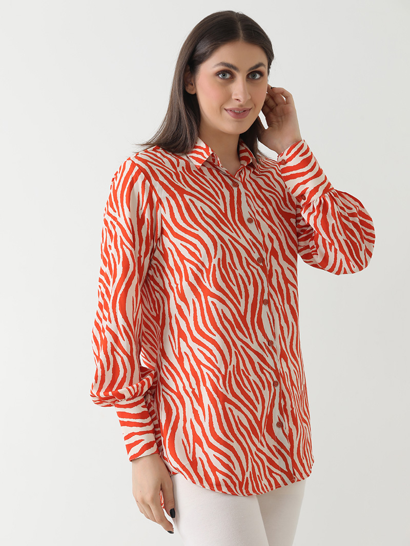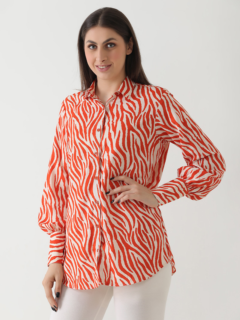 Fiery Zebra Print Georgette Shirt