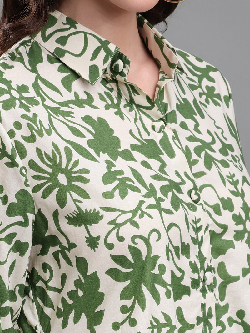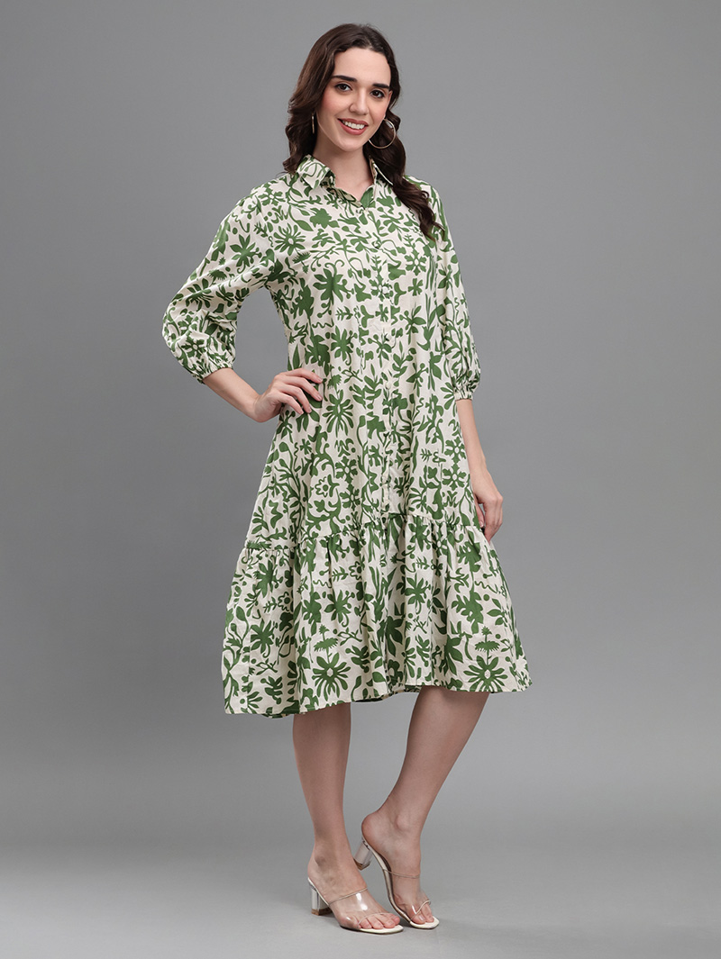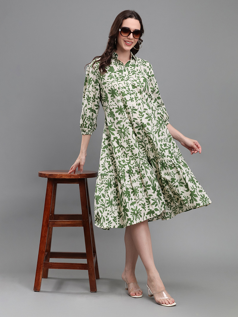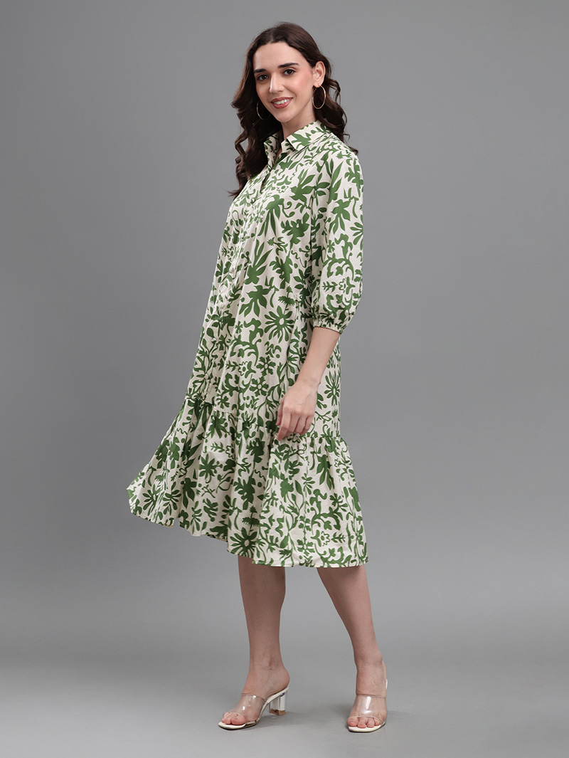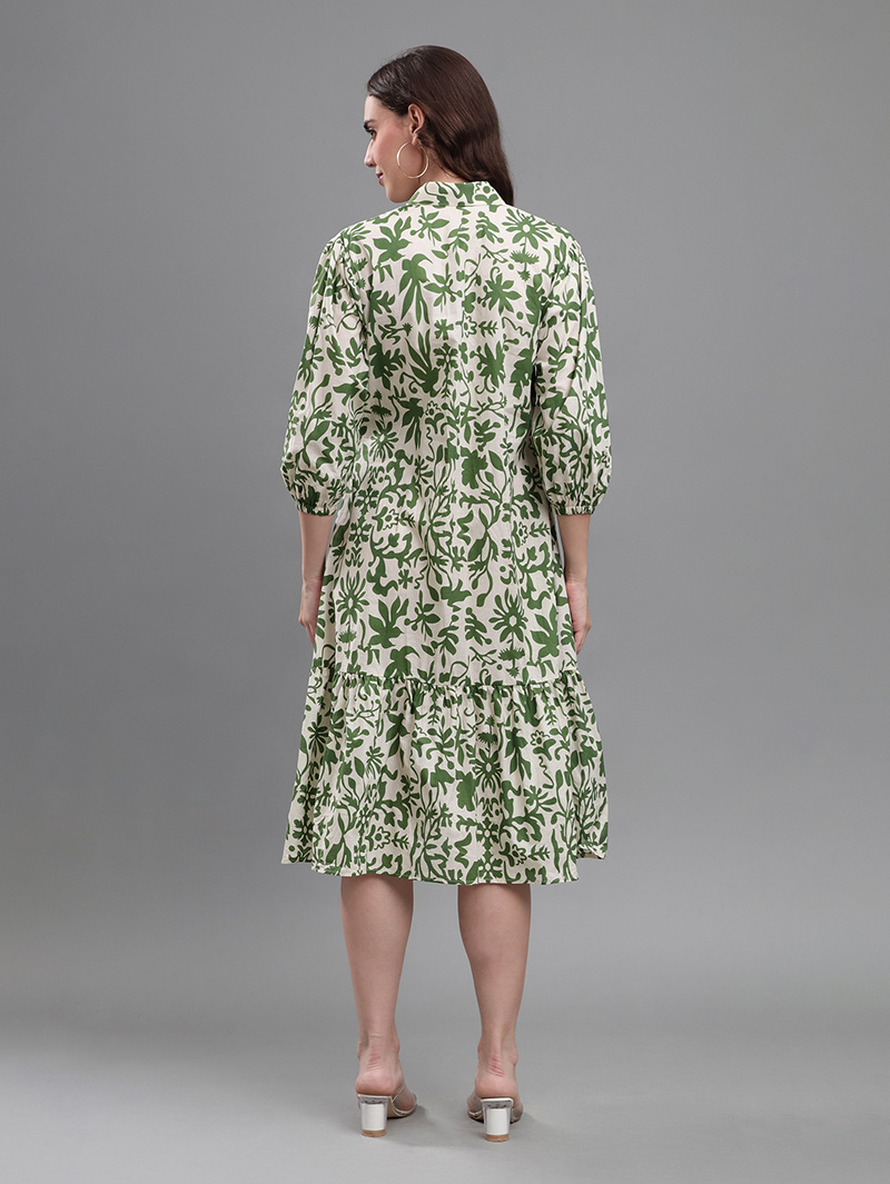 Green Botanical Print Dress
