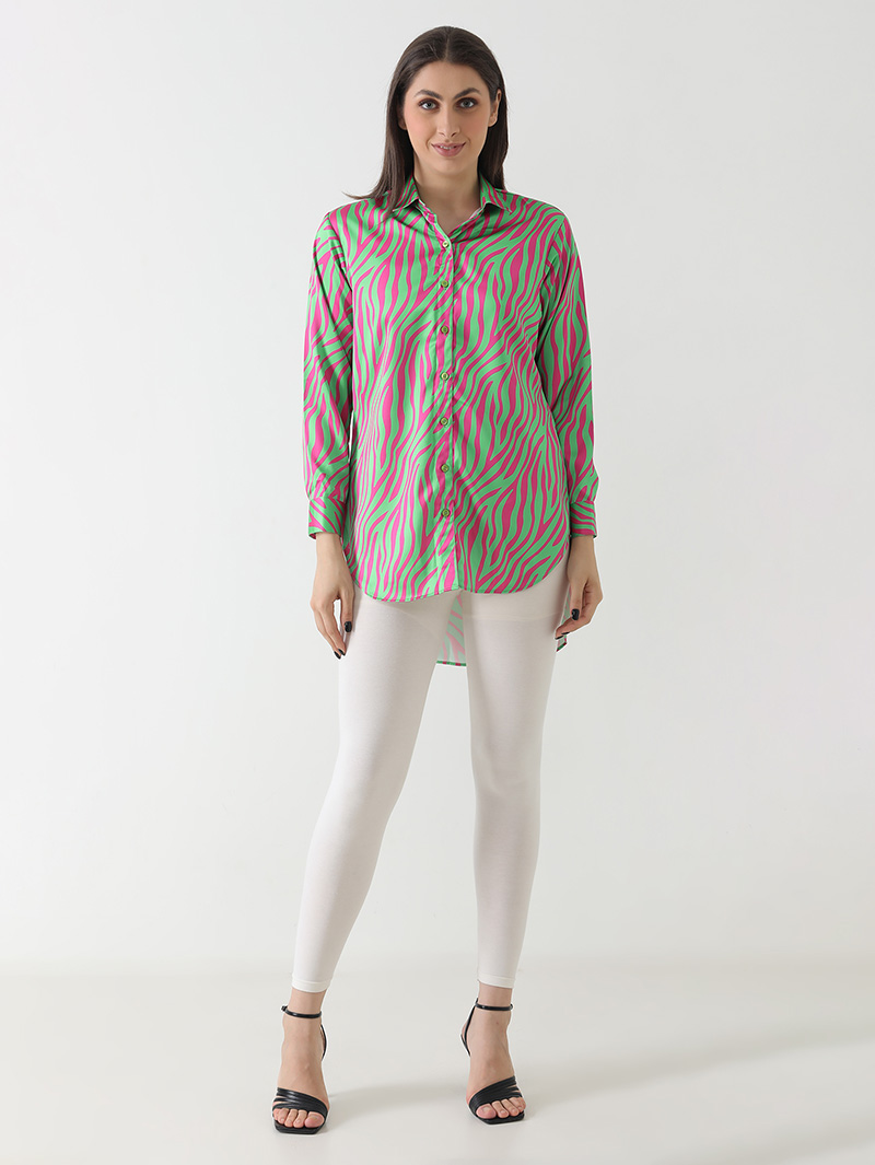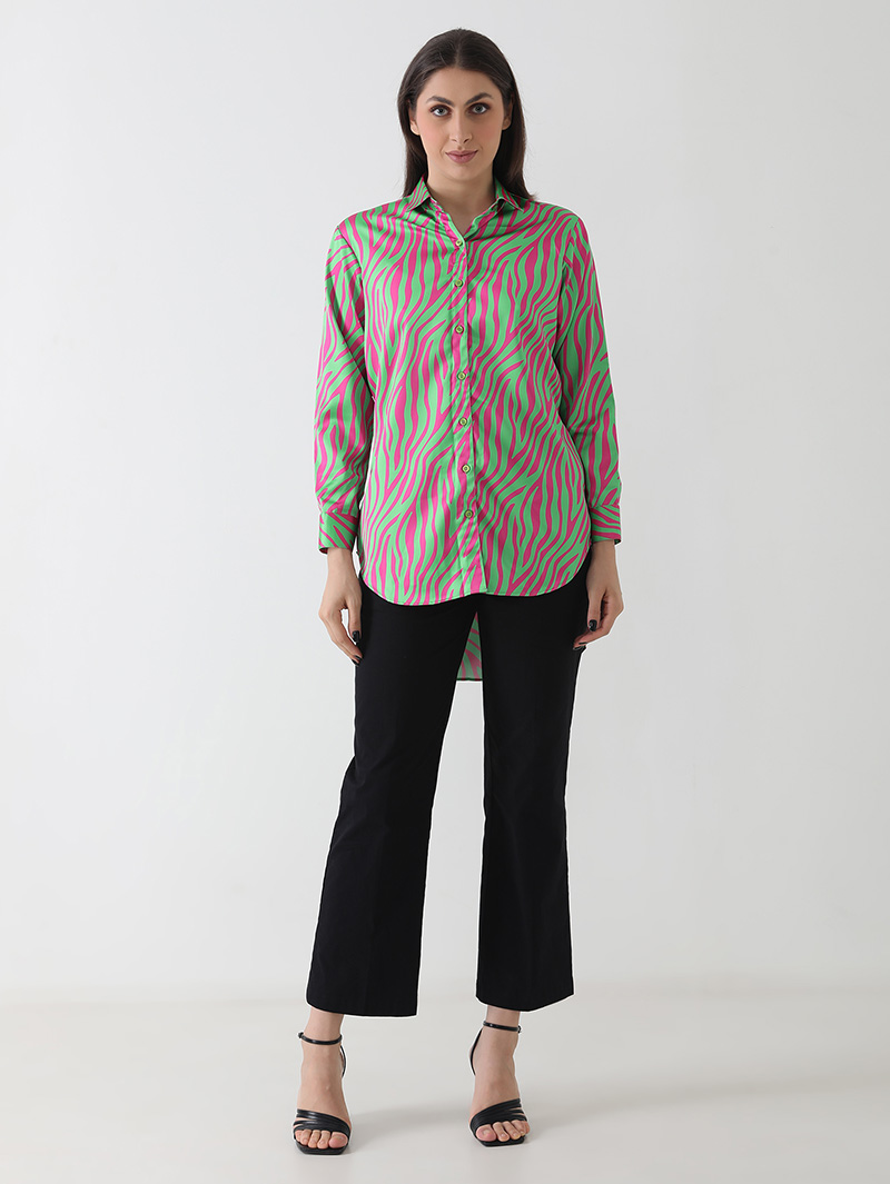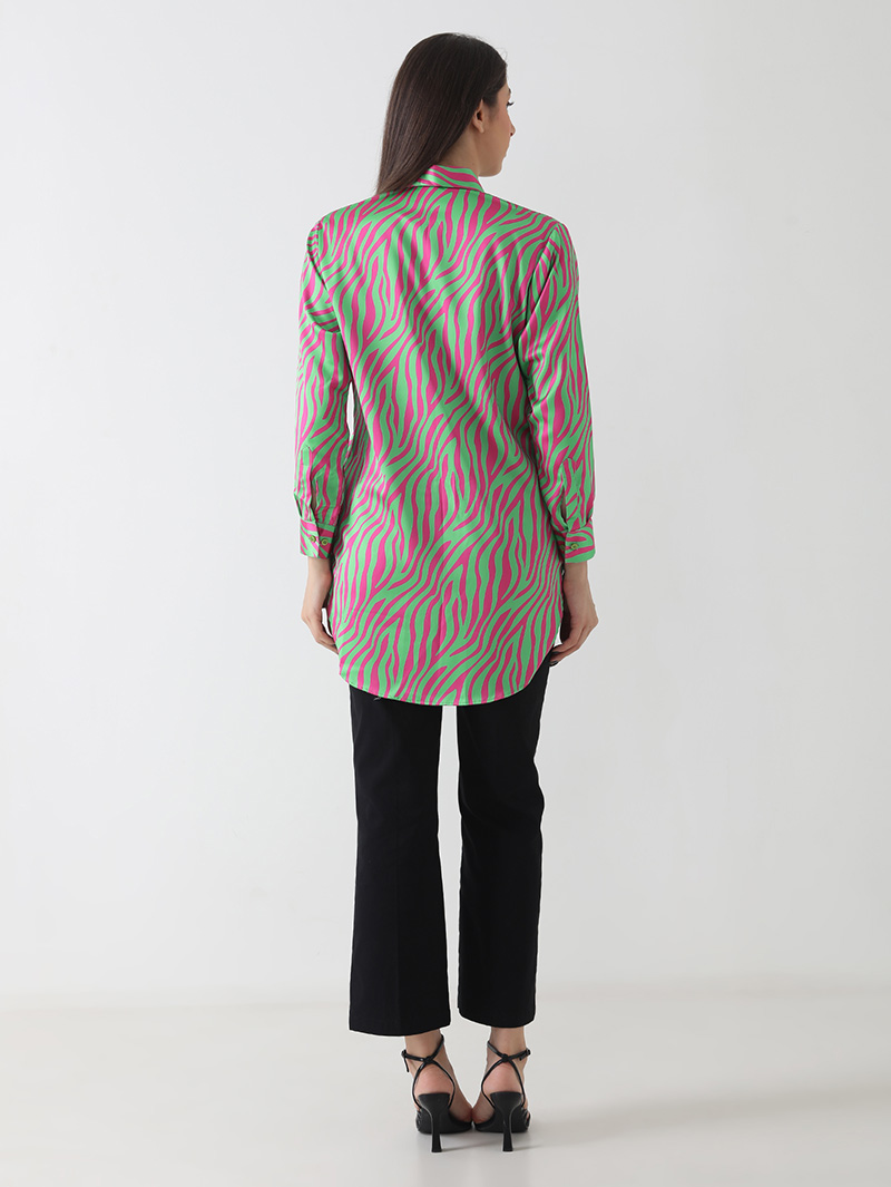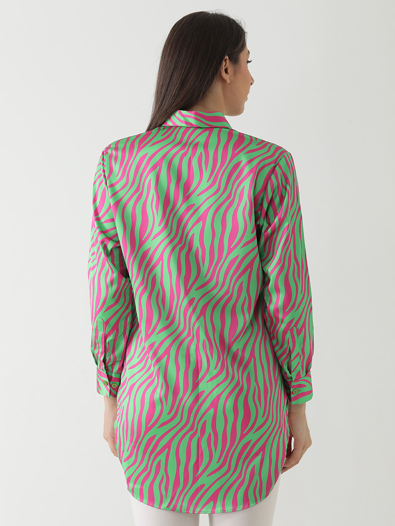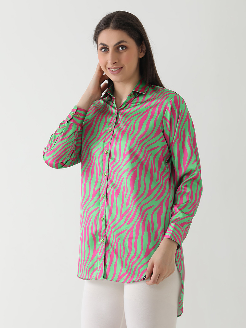 Neon Zebra Print Satin Shirt